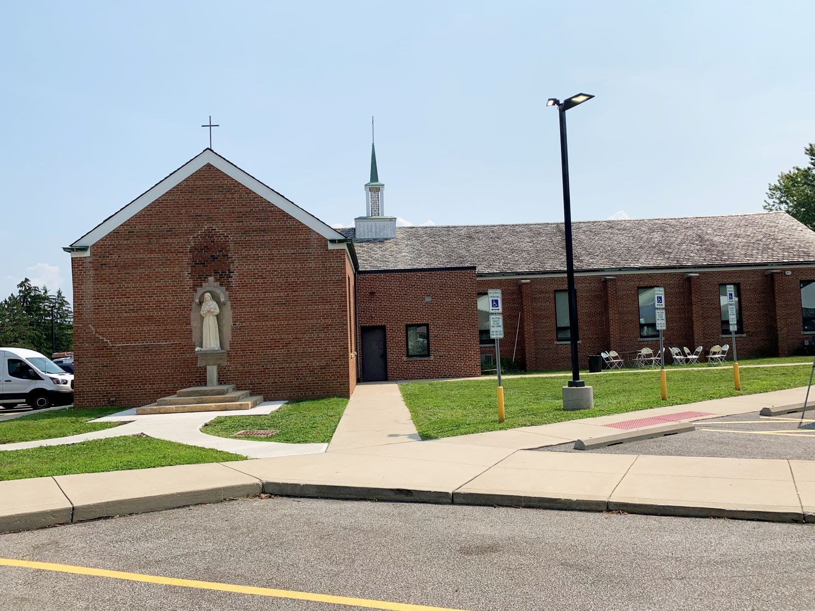The main campus is in Independence, Ohio. Residing on the main campus are offices, residences, meeting rooms, and the Chapel. The main campus is a beautiful 26 acre compound. Currently on the campus reside 4 buildings: the Chapel, Parish Center, and 2 resident homes. The Parish Center has multiple living areas, kitchen, meeting rooms, and a sun room. Future plans for the Independence location include a covered pavilion, new Church, large hall, and even living areas for the elderly.